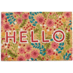 With this lovely coconut doormat with a summery motif and HELLO SUMMER lettering, you'll put a smile on your guests' faces before they even open the door. But the doormat not only scores visually. The natural coconut fibres make the door mat robust and durable. The environmentally responsible raw material is characterised by weatherproof properties and gives the doormat a natural look. The underside is made of non-slip PVC so that the doormat stays in place. Note: Coir is a natural product, which is why there may be slight variations in the structure and colour of the fibres. Coir Doormat Details • Dimensions: approx 1.5 x 60 x 40 cm (0.6 x 23.6 x 15.7 in) • Weight: approx 1.4 kg (3.1 lbs) • Top side made of natural coir fibres • Rubber (PVC) underside • Anti-slip and moisture-resistant • Colourful flower print with HELLO SUMMER greeting Sustainable Coir Floor Mat for Indoor and Outdoor Use • Coir fibres catch dirt from shoes • To clean, simply dust off • Sustainably grown and