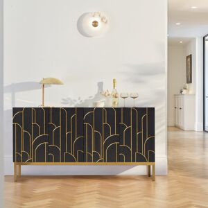 Bring a touch of vintage glamour to your home with the Heathfield Gatsby 4-Door Sideboard. Inspired by classic Art Deco design, this striking storage cabinet features a bold gold line motif across the front, set against a deep noir black finish, and is beautifully elevated on sleek gold legs for a luxurious look. Fairmont Park Colour: Noir Black