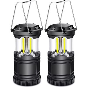 【Multifunctional Use】There are 2 metal handles on the top of the lantern, which can emit a 350 lm light, suitable for camping, fishing, outdoor activities and other scenes. Requires 3 AAA batteries (batteries not included). 【Super Brightness】Powerful 3W LED camping light for outdoor use. Requires three AAA batteries (batteries not included), ultra-bright 360° COB lighting, at the same time it can maintain a long battery life, so you don't need to replace it frequently. 【High Quality】This LED camping light is made of high-quality ABS. Built-in Class A LED chip, can be used continuously for over 10,000 hours, perfect for your travels and safety. 【Portable Design】Pull up to turn on the light, press down to turn off the light. Very easy to use. Compact and space-saving black camping light with 2 metal brackets for hanging and better illuminating larger areas. It can be hung from a tree branch or the hood of a car. 【Rugged and Durable】Our LED flashlight is designed to withstand the