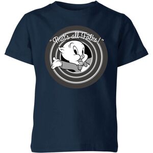 IWOOT - Stuff you really, really wantHey hey hey, what's up doc? Looney Tunes merchandise is now here featuring all your favourites from Daffy and Bugs, to Elmer and Taz. You'll find classic tees, sweatshirts and more here to make you shout THUFFERING THUCCOTASH!Our fantastic Looney Tunes That's All Folks Porky Pig Women's T-Shirt is a product with individuality, exclusively available on our site. Imagined by our team of designers, it showcases our innovation with a striking print on a Navy template.(Ensuring adherance to best practice, this product has been sourced from ethical suppliers, and considerations such as these will make you glad that you shopped at this site.) 100% cotton clothingWashing-machine supportedCheck the label for tumble-dryer instructionsMedium-weight cottonEqually, sizing is important, and we've addressed this with a relaxed fit. If you'd prefer a loosened fit, please order a size up.