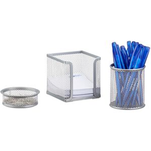 With this desk organizer, the battle against chaos in your office is finally won. The 3-piece set takes care of your highlighters, pens and notes. It contains a pen holder, note box and a small round tray that can be used to store pins, paper clips and more. The stationery set is entirely made of metal. A unique grain makes this piece a real eye-catcher anywhere. Desk Organizer Set Small Details • Large pen holder H x W x D: 9.4 x 8.1 x 8.1 cm • Round tray H x W x D: 3.3 x 8.9 x 8.9 cm • Note box H x W x D: 9.5 x 9.5 x 9.5 cm Stationery Set of 3 • Made of metal • Weight: app 0.3 kg • 3-Piece set: • Uniform design • Available in various colours Metal Desk Organizer Set • Ensures order on your workspace • Made of robust metal • Linear design (mesh) • Slip protection for individual parts • Pens, notes, eraser, paper clips etc. at your fingertips Included in Delivery • 1 x Desk Organizer Set of 3 • Decorative items shown in product photos are not included