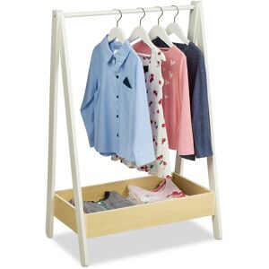 This colourful hanging rack is the perfect piece of furniture to storechildren’s or baby clothes in your child’s room. Hang t-shirts, dresses, shirtsand jackets on the rail. Other pieces of clothing, such as trousers, hats andscarves or even small backpacks can be stored on the shelf. Thanks to itschild-friendly size, your little ones can hang their own clothes up on the rackand learn how to keep things tidy. Child’s Clothes Rack Specifications - Total dimensions H x W x D: approx. 99 x 64.5 x 42 cm (39 x 25.4 x 16.5 in.) - Clothes rail W x D: approx. 58.5 x 2 cm (23 x 0.8 in.) - Interior dimensions of compartment H x W x D: approx. 8 x 58 x 32 cm (3.1 x22.8 x 12.6 in.) - Rail weight capacity: 5 kg - Shelf weight capacity: 15 kg - Weight: approx. 4.9 kg - Material: MDF, Pine - Colour: Red, Yellow, Green, Blue, Pink Free-Standing Kids Wardrobe Rack - Clothing stand with clothes rail and shelf - For hanging and storing kids clothes - Child-friendly size so they can tidy away their own