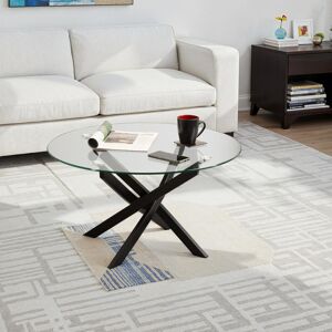 Add a sleek, sculptural statement to your living space with this modern round top coffee table, designed to blend contemporary style with everyday practicality. The clear tempered glass top offers a spacious surface while keeping the room feeling open and light, supported by a striking black criss-cross base that adds bold architectural flair. Perfect for modern homes, this piece arrives flat packed for easy self-assembly and is ideal for those looking to update their living area with minimal fuss and maximum impact. Pair it with other coordinating items from the same collection to create a cohesive, on-trend look throughout your home. Metro Lane