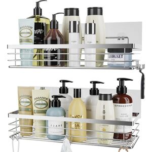 The adhesive of the shower caddy is made of nano material and has powerful adhesiveness. No drilling and damage to the wall. Just stick the adhesive on the surface and install the bathroom shelf on it.SUS 304 stainless steel material, ensuring beauty, durability and great quality of the product.2 side hooks are used to hang shavers or towels, and 3 front hooks are used to hang sponges or towels, etc. Latitude Run
