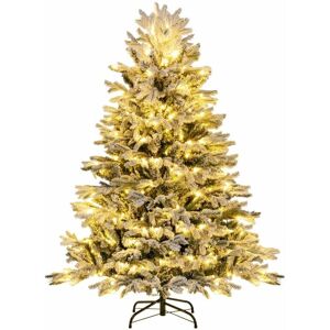 Get ready to be surprised by the 136 cm Xmas tree! Unlike others, ours features 384 flocked branch tips for the wintry season, which contains mixed PE & PVC branch tips for perfect simulation, also including pine needles. More, made of high-quality materials, the durable Christmas tree resists fire & unwanted deformations. Its PE material ensures that its colors remain vivid & unfaded, while also being allergy-free. Illuminate your space with up to 150 warm white LED lights, casting a magical glow that fills the room with joy & cheer. Setting up the Xmas tree is convenient, thanks to hinged connections that allow the branch tips to automatically expand. The sturdy foldable metal stand promotes stability & saves you time during installation. From office parties to school celebrations & carnival, this pre-lit Xmas tree is the perfect centerpiece. When the celebrations come to an end, simply disassemble the tree into 2 sections for compact storage. As a thoughtful addition, we provide a