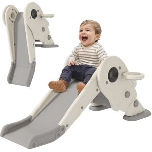 Create a playtime phenomenon with the AIYAPLAY kids slide, suitable for ages 1-3 years. Its four-in-one design includes a slide, basketball hoop, telescope, storage basket and climber, brings endless fun and excitement. Safety features like an acceleration area, deceleration zone and buffer zone, along with closed steps to prevent slips, make it a great choice for indoor play. Suitable for toddlers, it elevates playtime to thrilling new heights. AIYAPLAY 5 in 1 Toddler Slide with Basketball Hoop, Climber, Telescope in Yellow