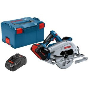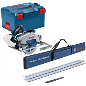 With the appropriate ProCORE battery installed, the Bosch GKS 18V-68 performs like an 1800 watt corded circular saw, only without the inconvenience of having to plug it into a power socket. Whether you're in the workshop, on a construction site or working in a domestic property, this 18v cordless saw can be used anywhere regardless of what kind of power is available, and without feeling like you're compromising any performance in the process. Features and Benefits • Compatible with all Bosch Professional and AMPShare 18v batteries • For maximum performance use with ProCORE battery (5.5ah or higher recommended) • Runs like an 1800 watt corded saw when used with ProCORE batteries • New auxiliary handle allows for perfect control in all cutting positions • Maximum cutting depth of 70mm at 90° • 360° rotating dust port can be angled out of the way when required • Overload protection helps to ensure longer tool lifetime • Braking system rapidly stops the blade in between uses for safety and convenience • Compact, powerful and energy efficient brushless motor • Includes wood cutting circular saw blade and parallel guide Specifications • Battery Voltage: 18v • Battery Type: Bosch Professional / AMPShare (lithium ion) • Motor: Brushless • Blade Diameter: 190mm • Bore: 30mm • Maximum Cutting Depth @ 90°: 70mm • No Load Speed: 5000 RPM Contents • GKS 18V-68 Cordless Circular Saw (bare tool) • Standard for Wood Circular Saw Blade • Parallel Guide • No Battery • No Charger • L-BOXX Insert • L-BOXX 238 Carry Case