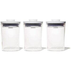 The Oxo Good Grips POP Round 3 Piece Mini Canister Set is perfect for keeping you kitchen organised and dry food fresh. With an approximate capacity of 0.5L, each storage container is BPA-free and features a new modern look with a convenient fill line to make filling simple. To activate the airtight seal simply press the button. Press the button again to release the seal for easy opening. The improved seal is fully removable and dishwasher safe. The Oxo Good Grips POP Round 3 Piece Set can be used beyond the kitchen - perfect for keeping studies, bathrooms and bedrooms organised. Each mini canister measures approximately 10cm wide x 14cm high and has a 0.5L capacity. Supplied with an OXO lifetime guarantee.