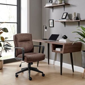 Our Rosso faux leather office chair is super comfy and supportive, and will be amazing in any study or bedroom for work or gaming. A sleek and simple design of straight lines, with ergonomic dedicated lower lumbar and leg support plus arm rests, the Rosso will keep you comfy for long stretches and look fab while doing it. Sitting on black sturdy plastic legs with five castor wheels. Upholstered in soft touch black or brown faux leather over durable foam and coil sprung seat (similar to the filling used in mattresses). Height adjustable, with a mini butterfly tilt and swivel mechanism in the seat plate for optimal positioning . This really is a luxurious and comfy chair! Available in black or brown faux leather. Check out our full office furniture range to complete the look. Latitude Run Upholstery Colour: Black