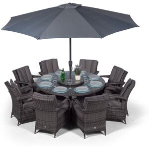 ARIZONA LUXURY 6 SEATER ROUND RATTAN GARDEN DINING SET RELAX & DINE IN STYLE with the luxurious Arizona 6 seater rattan dining set by Giardino. Designed to be the focal point of your outdoor living space, the Arizona rattan dining sets statement feature is its luxury rattan dining chairs with wide curved armrests and contoured high back rests, this is one of our most comfortable and stylish outdoor rattan dining sets. This 6 seater rattan dining table and chairs set is available in a stunning mixed brown weave or the ultra stylish mixed grey weave. INCLUDES EVERYTHING YOU NEED - The versatile Savannah rattan dining set provides everything you need to enjoy alfresco family meals during long warm summer days, whilst making your outdoor living space ultra stylish! Consisting of a 135cm round rattan dining table, Lazy Susan, 6 luxury padded dining chairs, 3m parasol and 12kg parasol base. Built to last years, the Giardino brand of synthetic outdoor wicker furniture is UV and weather
