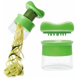 [Healthy Diet and Tray] ----- Fast life makes our diet irregular and unhealthy. Eating fresh and healthy vegetables is good for your health. This spiral vegetable cutter makes vegetable salad easy and simple. Easy to make zucchini pasta. Join a healthy lifestyle. [Sharp Blade and Labor Saving] ----- Two sharp 304 blades are combined into one slicing tool, allowing you to cut cucumbers, zucchini, and so on easily and quickly. It is used for vegetables up to 5.5 cm in diameter. Please be careful to: Do not put your fingers into the blade to avoid injury. [Easy to clean] ----- 304 stainless steel material, it is easy to wash, and each spiral vegetable cutter is equipped with a cleaning brush (the original brush is bent, please smooth it out upon receipt), after cutting vegetables such as cucumber and zucchini, please wash them immediately to prevent the blade from being stuck by vegetables. [Very easy to use] ----- Cut both ends of the vegetables (cucumbers, zucchini), leave the side