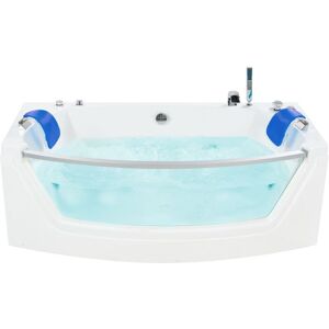 Whirlpool SPA Bathtub. Go for ultimate relax in your own bathroom with this modern corner hot tub. Built-in water jets offer a back and neck massage, and the headrest covered with artificial leather allows you to rest your head comfortably. The LED lighting in seven colours greatly improves the mood and introduces a relaxing atmosphere. The acrylic bath helps to keep the water warm and is easy to clean. Details: Product Type: Corner Bathtub Style: Modern General Color: White, Black, Silver Material Type: Acrylic Main Material: Acrylic Additional Material: Steel Shape: Triangular Digital Control Panel: No Finish: Gloss Hydro Massage Jets: Yes Jetstreams: 6 Power consumption: 700 W Noise Level: 50-85 Orientation: Right Hand Voltage rating: 230 V (50 Hz) Jet pump: 0.7 kW/h Underwater Light: Yes Capacity: 250 Waterfall: No Dimensions: Width: 100 cm Inner Dimensions: 103x54x45 Length: 150 cm Height: 80 cm Weight: 65 kg Weight Capacity: 300 kg Offer Includes: 1 x Headrest, 1 x Drainage