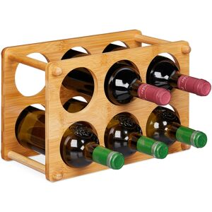 This bamboo rack is a must-have for wine aficionados! Have your favourite wine assortment at hand in a stylish display: the wooden support offers space for 6 bottles. Perfect for relaxing at home or a pleasant evening with friends. The arch-shaped form with its elegant wooden accents is a suitable match to your kitchen or living-room. The natural colour of bamboo fits to any home design. Wine bottles can be horizontally stored- in this way corks won’t dry up. Wine Rack Details - Total size H x W x D: app. 21 x 32 x 18.5 cm - Size bottle holder D: app. 8.3 cm - Weight: app. 0.66 kg - Material: Bamboo - Colour: Natural Bamboo Wine Stand - Storage for 6 bottles of wine - Elegant and compact stand out of natural wood - Bottles can be stored horizontally - Decorative accessory, perfect for wine presentations - Bamboo is a durable material & moisture resistant Included in Delivery - 1 x Wine Shelf in Pieces - Wine bottles and decorative items are not included
