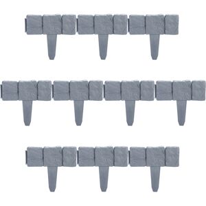 This 10 piece flower bed border set allows you to create clear demarcation of beds, lawns and paths. The decorative stone effect will ensure your blooming flower beds look stylish and elegant. The flexible border made from plastic is perfect for curved beds. The durable and weatherproof lawn edge pieces can be easily stuck together and therefore extended as desired. With help from ground stakes the individual flower bed edging components can be securely stuck in the ground. Please be aware that the back of the lawn edging is hollow and constructing corners with a 90° is not possible with the push together system. Lawn Edging Pack of 10 Specifications - Dimensions per component H x W x D: approx. 23 x 25 x 2 cm (9 x 9.8 x 0.8 in.) - Height without stake: approx. 10 cm (3.9 in.) - Stake length: approx. 13 cm (5.1 in.) - Total length: approx. 2.5 m (8.2 ft) - Weight per component: approx. 60 g - Material: Plastic (PP) - Colour: Black Flowerbed Border in Stone Look - 10 piece lawn edging