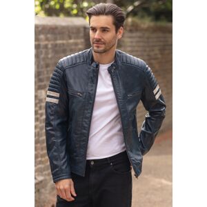 Elevate your outerwear game with the Ashwood Leather Biker Jacket, expertly crafted from 100% genuine British leather. This slim fit design delivers a sleek silhouette, featuring a bold contrasting stripe and a distinctive buckle press stud collar for a standout look. Functional and fashionable, it includes a zip fastening closure, press stud cuffs and waistline for an adjustable fit, and ample storage with two chest zip pockets, two side zip pockets, one internal patch pocket, and one internal zip pocket. Perfectly blending rugged durability with modern edge, this jacket is designed for both the road and the runway.