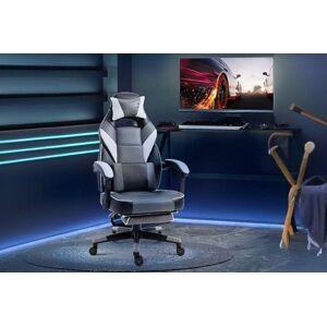 Stylish: Two-tone faux leather upholstery - this games chair brings style into your gaming room and work space. Comfortable: Thick padding all over, padded armrests, a high back, swivel base and cut-out panels on the back for airflow. Wide seat offers plenty of room. Manual footrest: Elevate your lower body on this game chair. Easy to pull out and push back in - great for relaxing with the back fully reclined back at 170°. 360° swivel base: Five castor wheels for easy movement whilst seated. Dimensions: 118.5-126.5H x 65W x 70Dcm. Seat: 45-53H x 55W x 53Dcm. Maximum load 120kg. Assembly required.
