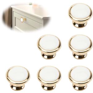 Packing list: The package contains 6 pieces of furniture handles with a diameter of 36mm, a height of 29mm and a base width of 22mm. Unique design: our furniture knobs have the shape small mushrooms with gold and white surfaces, ergonomically designed to make cabinet doors easier to open and pull. This better reflects the quality of our furniture. High-quality material: The cabinet door handle is made of high-quality zinc alloy, and the surface adopts electroplating process. More rounded, durable, anti-oxidation, not easy to rust. The gold and white colors are also accurate, the quality is better and will last a long time. Easy to install: the cabinet door handles simply find the location on the board where you want to install them and drill Holes. Then insert the provided screws into the back of the board and tighten them onto the buttons. Can be easily installed on furniture. WIDE APPLICABILITY: These gold cabinet knobs are suitable for most types of cabinets, dressers and drawers.