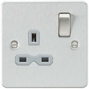 Specification Knightsbridge Flat plate 13A 1G DP switched socket - polished chrome with black insert Finish: Polished Chrome Material: Premium Grade Steel IP Rating: IP20 Height (cm): 8.75 Width (cm): 8.75 Projection (cm): 0.25 Weight (kg): 0.214 Description Perfect finishing touch to any modern home, ultra-low profile Flat Plate metal design with matching metal rocker, unique socket insert design that is completely hidden once a plug is inserted. - 13A 1G Switched Socket - Double Pole Switch - Flat Plate low profile design with built in gasket - Certified to BS 1363:2 - Minimum mounting box depth 25mm
