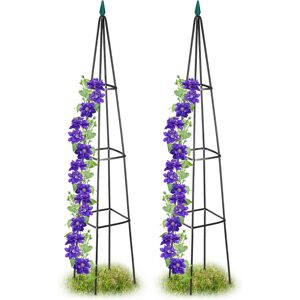 These black plant supports in a set of 2 made from metal provide climbing plants with support they need when growing. The obelisks are a great way to display plants such as ivy, roses, clematis or vines and will add a romantic touch to your garden. The frames can also be used for vegetable plants such as tomatoes. The decorative spire and the minimal black design ensure that the obelisks won’t steal attention away from your flowers. Garden Obelisks in a Set of 2 Details - Size H x W x D: approx. 190 x 35 x 35 cm each - Pole thickness: approx. 1.3 cm each - Weight: approx. 1.5 kg each - Material: Iron (powder-coated), plastic - Colour: Black, green Garden Obelisk for Climbing Plants - The set of 2 can be used together or arranged separately - Supports growth of various types of climbing plants - Ideal for roses, vines, ivy, tomatoes etc. - Pyramid shape with decorative spire - Sturdy iron frame with weatherproof powder coating - Simply push into the soil for more stability Included in
