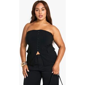 Boohoo Womens Plus Bengaline Corset Bandeau Top - Black Viscose - Size 20 Uk