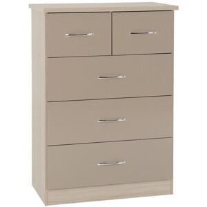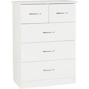 Features: Composite board 3d paint effect 3d plastic veneer Mdf back panel Mdf drawer base Metal handle Metal drawer runners Plastic back panel strip Plastic feet Dimension & Weight Dimension: L46 x W81 x H115.5 cm Weight: 42.3kg . Nevada 3+2 Drawer Chest. Delivery is free to UK Mainland, excluding AB31 to AB38, AB40 to AB56, IV, KA27 & KA28, KW, PA20 to PA78, PH4 to PH50 and ZE in Scotland; BT for Northern Ireland; all postcodes within the Republic of Ireland where a surcharge will apply, please check before ordering.. 3#5