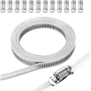 【Set Details】DIY 304 Stainless Steel Hose Clamp Kit for hose clamps consists of a roll of 5m long steel tape and 12 individual ties. You can adjust the size according to your needs. 【Excellent material】Metal Hose Clamps are made of high quality 304 stainless steel, resistant to water, high temperature and corrosion, strong and durable, with a smooth surface and no burrs. 【Adjustable design】Stainless steel hose clamps are adjustable and very practical, allowing customized installation for different sizes of pipes. 【Easy to install】To install the hose clamp, simply cut the steel strip to the required size, install the fasteners, and finally tighten the screws with a screwdriver or wrench. 【Wide range of applications】Stainless steel endless hose clamps can play an important role in repairing pipes, cables, hoses, kitchen hood ducts, air conditioning ducts, water supply, irrigation and fuel lines. Note: The data are all measured manually, please allow 1-3cm error due to differences in