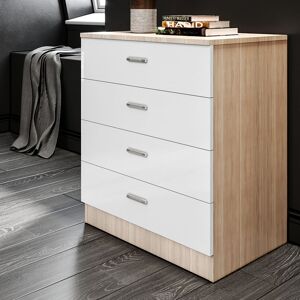 Storage Solutions with Modern and Classic Elements This modern 4 storage drawer chest of drawers has large storage capacity and high cost performance. You can get it done easily following the installation instruction. Its elegant design will surely brighten your bedroom and add value to your property. About this item Brand ELEGANT Colour White/Oak SIZE 600x400x685mm (WxDxH) Type Chest of Drawers Number of Drawers 4 Handle Material Aluminum Finish Glossy Features: ⭐【 Spacious storage 】 4 drawer chest of drawers providing storage for everyday necessities ⭐【 Made of high grade moisture 】 resistant and durable MDF engineered wood,healthy and environmental friendly. ⭐【 Safety stops 】 Drawer opens and closes with ease on a smooth metal rail and includes built in safety stops ⭐【 Easy installation 】 The bedside cabinet came with flat packaging, including full installation instruction ⭐【 Multifunction 】 The cabinet can be placed in the bedroom living room dining room and so on, this is a
