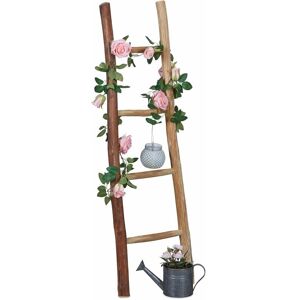 This versatile wooden ladder is both a practical and decorative accessory for your home. You can place plant pots, seasonal decor or newspapers on the 4 rungs or hang fairy lights on the vintage ladder to give your garden a unique decorative touch. You can also use the natural wooden ladder for storing clothes in your bedroom or as a towel rack in the bathroom. Bring some rustic flair to your home with this handmade ladder made from high-quality chestnut wood. Please note: As this product is handcrafted from natural materials, colour, size and shape may vary. Decorative Ladder Specifications - Total size H x W x D: approx. 116 x 35 x 4.5 cm (45.7 x 13.8 x 1.8 in.) - Diameter per rung: approx. 3 cm (1.2 in.) - Distance between rungs: approx. 22 cm (8.7 in.) - Max. load capacity: approx. 70 kg - Weight: approx. 2.4 kg - Material: Chestnut wood - Colour: Natural Decorative Wooden Ladder with 4 Rungs - Wooden ladder adds a rustic touch to your home and garden - Use to display plants,