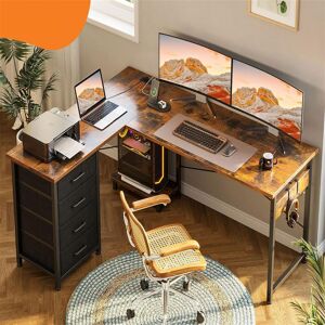 【Multiple Storage Space】This corner desk has 4 drawers and 2 iron hooks, which gives you great storage space to easily store documents, stationery, and other private items, helping you keep your desktop neat and clean. This sturdy office desk allows you to place your printer, scanner, fax machine, and any other office equipment within easy reach. Naomi Top Colour: Brown