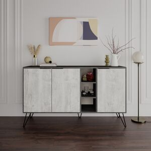 Hairpin legs, a streamlined silhouette, and a two-tone color palette give this sideboard its Scandinavian-inspired appeal. Adding a dash of contemporary style to its surroundings, the sideboard also offers plenty of storage and display space, with three exterior shelves and two cabinets. The inviting surface is just waiting for a favorite houseplant or photograph. SIDEBOARD - Living room buffet, Living room sideboard, Kitchen pantry, 150x43h75 cm Hykkon Colour: Retro Grey/Ancient White