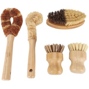 DURABLE & PLASTIC-FREE OPTION: Scrub brushes are made of two different types of bristles (natural sisal or fiber and wood), can withstand high temperatures and acidity. Can be used for almost any cleaning job, including non-stick pans. Great gift for an eco-conscious family member PRACTICAL CLEANING BRUSH SET: 4 pieces of brushes included 1 x scrub brush, 2 x dish brush, 1 x bottle brush, 1 x vegetable brush; One set does a job on general cleaning and covered for all your kitchen cleaning needs WORK WELL FOR SCRUB: The brushes exactly the right density and strength. Not too soft and just the right firmness. scrubbing power, cleaning grease, stains, mold, mildew, grease or tough dirt gently and effectively COMFORTABLE AND EASY TO USE: The different brushes are comfortable to hold and make cleaning easier. You can use it to brush and clean pots, pans, dishes, bottles, cups, baking sheets, fruits and vegetables MULTIPLE DIFFERENT KITCHEN BRUSHES: Perfect for any cleaning or scrubbing.