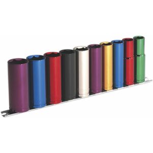 Multi-coloured Chrome Vanadium steel deep socket set. Hardened and tempered with chrome finish for corrosion resistance. All sockets include WallDrive® configuration giving 30% more torque handling power. Colour coded for fast identification. Set supplied on socket rail and backed by lifetime guarantee. SEALEY PREMIER - One of a comprehensive range of Premier Hand Tools, suitable for daily professional use. CHROME VANADIUM - Hardened and tempered with multi-coloured chrome finish for corrosion resistance. 6-POINT WALLDRIVE® SOCKETS - All sockets include WallDrive® configuration giving an additional 30% more torque handling power than traditional sockets. COLOUR CODED - For fast identification. 10PC SET - Contents: 10, 11, 12, 13, 14, 15, 16, 17, 18, 19mm. SOCKET RAIL - Sets supplied on socket rail. LIFETIME GUARANTEE*.