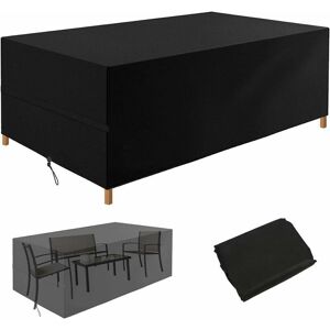 [Upgrade heavy-duty material] The garden furniture cover is made of high-density 600D Oxford cloth fabric, which is waterproof, weatherproof, snowproof, anti-ultraviolet, and tear-proof. Garden table covers can protect your furniture co.ukom rain, dust, fallen leaves, animal scratches or feces, and can fully protect your furniture sets co.ukom aging, fading, moisture, rust or cracking. [Durable and waterproof] There is a thick-coated furniture cover to prevent water intrusion and wetting your furniture. The outside is black, and the lid of the tavern suit will best absorb ultraviolet rays for better protection and make your furniture more durable. At the same time, it does an excellent job of breathability, allowing your furniture to breathe smoothly and drain internal moisture in time. [Perfect size fit] The size of the garden furniture cover is 270*180*89cm. Outdoor furniture sets are suitable for all kinds of outdoor furniture, chairs, benches, coffee tables, rattan cube furniture