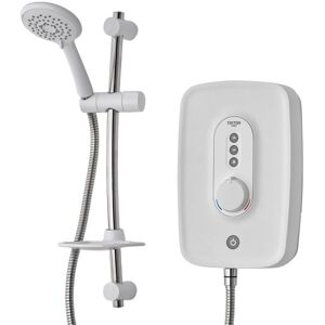 Triton Danzi 8.5kW Electric Shower Bathroom Shower Head White The Danzi 8.5kW electric shower is easy to maintain and operate with its rub-clean nozzles and simple controls. The hose is anti-twist to prevent kinks and damage, increasing its longevity. Phased shutdown is ideal for families, offering a safe start to every shower. A Bright, Modern, Versatile Look This shower has a gleaming gloss white finish that will suit many bathroom interiors. The contrasting 1.25m stainless steel shower hose is anti-twist to prevent kinks, while the flat, transparent soap dish adds an elegant and minimalist final touch. Designed for Comfort and Ease Tailor your showers to your individual comfort with 5 distinct spray patterns: Jet, Massage, Rain, Full and Drench. Rub-clean nozzles make the shower head easy to maintain. Safe for Everyone with Simple Controls The shower is simple to use, featuring a straightforward start/stop button and a separate temperature dial. The phased shutdown safety feature