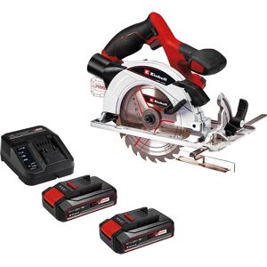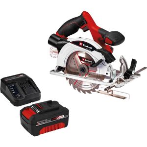 The Einhell TE-CS 18/165-1 Li cordless circular saw is compact, light and easy to work with. Because it is a member of the Power-X-Change family, and will run on any Power X-Change battery, it is ideal for use anywhere around the home and garden- in fact you can take it anywhere work needs to be done. The cutting depth and angle can be adjusted quickly and easily without any tools. A spindle lock makes it easy to swap out saw blades, and a high-quality LED worklight gives you a clear view of the cutting line. For especially precise cutting, the TE-CS 18/165-1 Li is also compatible with the Einhell guide rail which is available separately. Specifications • Battery Voltage: 18v • Battery Type: Power X-Change • No-load Speed: 4200 min^-1 • Saw Blade Diameter: 165mm • Saw Blade Bore: 20mm • Max Cutting Depth at 90°: 54mm • Max Cutting Depth at 45°: 35mm Features & Benefits • Member of the Power X-Change family • Small, light and handy – for comfortable operation • Easy adjustment without tools (cutting depth, tilt angle) • Dust extractor adaptor to keep the workplace clean • Compatible with the Einhell guide rail • Easy changing of the saw blade thanks to the spindle lock • High quality aluminium base plate • High quality saw blade is included in delivery • High-quality LED for optimum illumination of the cutting area Contents • TE-CS 18/165-1 Li Solo Cordless Circular Saw • Saw Blade (165mm diameter, 20mm bore, 18 teeth) • Einhell 18v Power X-Change Li-Ion Battery 2.5ah • Battery Charger • No Case
