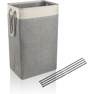 LARGE CAPACITY AND REALLY GOOD-LIGHTWEIGHT UPGRADE - The large laundry basket has 84 liters, size: 68(H) x 42(W) x 31(W)cm (18cm higher than others), this size is suitable for a family (for maybe 4-5 people washing), students, children and apartment. Premium and sturdy material: the wire-reinforced top edge holds its shape well, and the 4 rods that you insert into the corners keep it upright unaided. The exterior is strong and beautiful linen, the lining is soft cotton, and the middle is a thick EVA board for supporting linen. The 2 strong rope handles are a good length to carry. Suitable for any situation - Perfect for bathroom, laundry room, bedroom, dorm room, closet, kids room, you can use this laundry hamper to store more than laundry, such as your child's toys. Small footprint: rectangular design, perfect for corners, large space but small footprint as a laundry hamper and storage container. Foldable Design: The foldable feature is ideal for travel or home storage and can be
