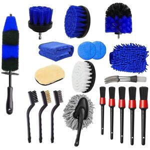【Universal and Multifunctional Car Cleaning Kit】: Package includes: Car Rim Brush * 1, Short Tire Brush * 1, Drill Brush * 4, Wire Brushes * 3, Car Detailing Brush * 5, Venetian Blind Brush * 1, Car Wash Gloves * 1, Microfiber Cloth * 1, Microfiber Applicators * 2. It is not only ideal for cleaning the exterior and interior of the car, bicycle, motorcycle, etc., but also useful for household cleaning!!! 【Quality Wheel Cleaning Brush】: Car Rim Brush: The bristle part is flexible but firm, which is useful for narrow space of the wheel, easily cleans mud and dirt from the rim. Short Handle Wheel Brush: Thick bristles can help you clean leather, tires and dashboard without damage. 【Multiple Car Interior Cleaning Kit】: 5 in 1 soft detailing brushes kit with different sizes for cleaning emblems, seat, console, etc. 3 in 1 Mini Wire Brush Set: The brushes are made of different materials: brass, steel and nylon, good for dust, dirt and rust removal. 2-in-1 Venetian Blind Brush: The