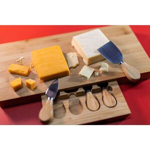 CHEESE SERVING PLATTER - Looking to impress your guests at your next dinner party? You don?t want to be serving your luxurious cheese on a simple plate, it doesn?t do your time and effort justice. That's where our fantastic cheese board with knive set comes in! The cheese serving board looks amazing in any home and compliments any kitchen with the natural bamboo look. KNIFE DRAWER - The clever design of this cheese board will ?wow!? your guests whilst they enjoy great tasting cheeses. Concealed within the cheeseboard, is an easy slide-out drawer that will keep all of the 4 included knives safe. The 4 knives included are a Stilton knife, cheddar knife, soft cheese knife, hard cheese knife, and a cheese fork. VERSATILE - Cheeseboards aren?t a regular occurrence for every household. When not in use as a cheese board, why not use it as an everyday chopping board? The strong and robust bamboo material makes the board perfect for bread, vegetables or meats. It can be a wine and cheese