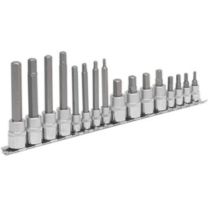 Heavy-duty Chrome Molybdenum impact hex, TRX-Star* socket bits and TRX-Star* female socket bits. Suitable for commercial vehicle applications. Supplied in storage case. Features & Benefits: • Heavy-duty Chrome Molybdenum impact hex, TRX-Star* socket bits and TRX-Star* female socket bits. • Suitable for commercial vehicle applications. • Supplied in storage case. • Model No. SX098 Specifications: Model No SX098 Brand: Sealey Contents: Bits; Hex - 17, 19, 22, 24mm, TRX-Star* - T60, T70, T80, T90, T100, Sockets; TRX-Star* Female - E18, E20, E22, E24, Impact Socket Adaptors; 3/4", 1"Sq Drive Drive: 3/4"/1"Sq Drive Nett Weight: 6.57kg