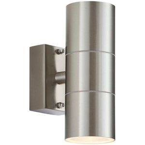 Specification Endon Canon - 2 Light Outdoor Up Down Wall Light Clear Glass, Polished Stainless Steel IP44, GU10 Finish: Polished Stainless Steel, Clear Glass Material: Stainless Steel, Glass IP Rating: IP44 Height (cm): 16.5 Width (cm): 6 Projection (cm): 11 No. of Lights: 2 Lamp Type: GU10 Wattage (max): 35 Weight (kg): 0.7 Description A modern stainless steel outdoor wall light. A 2 light fitting for directing light upwards and downwards, suitable for lighting doorways and paths or to light up features. Can be used with LED lamps and dimmable