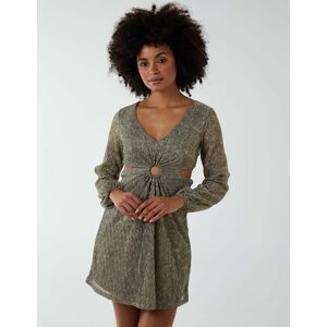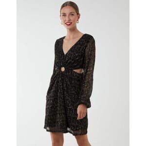 Make this the season to break rules. Exclusively by Blue Vanilla, the V Neck Long Sleeve Lurex Dress with Keyhole features side cut outs, a front waist keyhole and a lace top layer. Enjoy a night out by matching this dress with black boots. 95% Polyester, 5% Elastane Hand washV neckline Long sleeveMini length Elasticated waist Model wears a size 8Model height: 175cm/ 5'9"