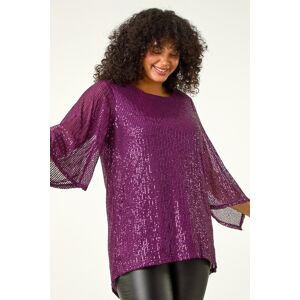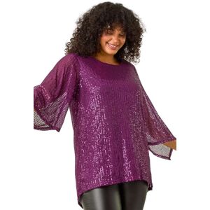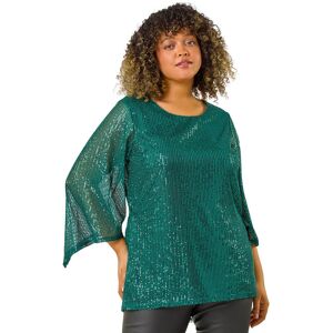 Curve Sequin Flared Sleeve Top from Roman. Dazzle your party guests this festive season with our luxurious Curve top. Adorned in all-over sequins, this comfortable jersey top features a modest round neckline and sheer, 3/4 length sleeves that add an elegant energy to the piece. Designed to pull on, this piece is perfect for those last-minute party plans. Wear with faux leather trousers and heels for a fashion statement!