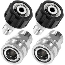 General description With this high-quality adapter set from vhbw, you can easily connect a high-pressure hose to a high-pressure cleaner featuring an M22 thread. This set is designed to enhance the functionality of your cleaning equipment. Technical specifications Connectors: M22 external thread, M22 internal thread Dimensions (L x W x H): 4.5 x 4.5 x 5.3 cm / 2.2 x 2.2 x 4.9 cm Material: rubber, plastic, brass, metal Colour: gold, grey, black Weight: 111 g Quick connect coupling Compatibility and accessories Replacement for Kärcher 2.643-037.0 Compatible with all pressure washers produced since 1992 Other information Not suitable for hose reels