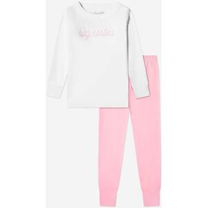 Magnolia Baby incorporate fine detailing and impeccable construction into their beautiful aesthetics. This baby girls pink pyjama set captures the label's distinctive high quality. Both presented in Pima cotton. The top features blue stitched 'Big Sister' detail whilst the leggings come with an elasticated waistband. Two Piece Set Top: Long Sleeves, Ribbed Trims Leggings: Ribbed Cuffs 100% Pima Cotton