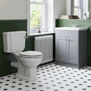 Key features:Traditional close coupled toilet designClassic ceramic toilet handleSoft close toilet seat made of MDFWall hung basin2 tap hole basinAdd a traditional touch to your home with the Park Lane Traditional Close Coupled Toilet and Wall Hung Basin Cloakroom Suite. Designed with beautifully classic features, a close coupled toilet design that creates space in your bathroom, along with a space-saving wall hung basin; this Park Lane toilet and basin suite is the perfect addition to any home. Close Coupled ToiletClose coupled toilets are an excellent space saver, saving you important floor space, which is imperative in smaller bathrooms. The modern classic design and glossy white finish of the Aspire close coupled toilet is sure to impress. Its compact design makes it ideal for en-suites and cloakrooms, while still offering full functionality and comfort. The close coupled design also makes for easy installation and maintenance, with the cistern sitting directly above the pan for a neat, streamlined look. Built from durable vitreous china, this toilet is designed to stand the test of time while maintaining its stylish, pristine appearance.Soft Close SeatWhat is it about dropping the toilet seat that scares the hell out of us?! Drop it in the middle of the night - scares us. Drop it in the middle of the day - scares us. There’s just something terrifying about the bang it makes! But you don’t need to live with this kind of torment, not with a soft-close toilet seat. They benefit from a clever mechanism that stops the seat from dropping quickly, making sure your bathroom stays forever a stress-free environment. The gentle close action also prevents damage to the toilet and seat, making it a practical and long-lasting addition.Traditional White FinishWhite is quite a traditional colour when it comes to bathrooms. Other than in the 70s and 80s, it has always played a huge part in British bathroom colour schemes. This crispness, coupled with the traditional detailing, creates an utterly beautiful combination. A white finish is not only stylish but also practical, as it helps to create a clean, bright atmosphere. It also makes it easy to match with various bathroom décors, whether you prefer a contemporary, minimalist space or a more classic design. Plus, a white toilet remains timeless, ensuring your bathroom looks fresh and modern for years to come. Wall Mounted Installation TypeOne of the biggest benefits of this basin is the fact that it's wall-hung. This means you don't need to have a cabinet or a pedestal underneath it, creating the look and feel of more space - a valuable asset in a smaller bathroom. By mounting it directly to the wall, you achieve a sleek, minimalist appearance while keeping the floor area clear for easier cleaning. It's a perfect choice for cloakrooms, en-suites, or modern bathroom designs where space is at a premium.2 Tap HolesThis basin features a tap hole on each side at the back, allowing you to use separate hot and...