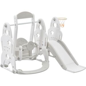 [Children's Playground 4-in-1] Unique rocket shape design, this product has five functional parts: 1 slide, 1 climbing ladder, 1 swing, and 1 basketball hoop. Let children experience a variety of fun, exercise children's sensory motor ability. [Certified HDPE Material] Our material is made of certified HDPE material. It is completely non-toxic and will not cause any impact on your baby's health. Parents can buy this set at home with peace of mind and create a dream playground for their babies. [Stable and Safe] The stable and safe structure is full of sense of design. The smooth surface without iron screws allows children to play happily. The thoughtful seat belt design secures the baby on the swing. [Complete Adaptation] The happy swing can be adjusted in 3 levels, fully adapting to the little baby who grows taller day by day. The overall swing center of gravity is set at the lowest possible height and in a safe position, so children can play with confidence without worrying about