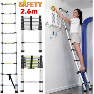 Dayplus - Telescopic 2.6m Aluminium Ladder Garage 9 Steps Roof Loft Attic Office Workshop