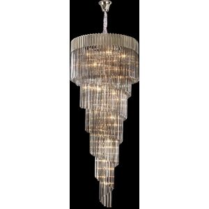 This Metro range comes from Prestige Lighting collection. The contemporary design of this grand spiral 31 light ceiling pendant combines a contemporary Matt Black finish with smoked sculptured glass pieces. The long, angular shape of the glass looks amazing when the light is on or off. The Metro range has a traditional regal effect composed with modern materials to create a range suitable for either a modern or more traditional room settings. The whole range offers great diversity of finishes and variety of glass. Please call the office for more information. Please note, this item might be shipped on the pallet. Some shipping restrictions might apply. FEATURES: * Spiral ceiling pendant light * Matt Black finish * Smoked sculptured glass * Handcrafted * Earthed * Requires 31 lights * Dimmable with suitable lamp / dimmer switch * Height adjustable prior to installation * Nett weight: 93 kg SIZE: * Min drop: 243cm * Max drop: 537cm * Body height: 218cm * Diameter: 90cm LAMP: * Requires 31 x Small Edison Screw LED Candle Lamps - NOT INCLUDED