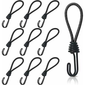【High Quality Material】Elastic Cords with high quality latex and steel hooks, not easy to break and rust, good elasticity, strong and durable, maximum load capacity of 15kg, weatherproof, perfect for snow, rain, sleet or other weather conditions in outdoor use. There are 10 rubber ropes with hooks in total. 【Double Hook at Both Ends】Tightening hook the tightening effect is durable, suitable for all transportation and load fixing in daily life. With strong elasticity and good support, it is compatible with bags of different sizes and weights. Compatible with all bicycles, cars, trolleys, luggage racks, camping, gardening, clotheslines. It is also an ideal tool for securing loose household items. 【Fourly Heavy Duty Metal】Professional rubber bungee cord with hook provides extra tensile strength and long-lasting durability. Can be used for securing bins, tarps, boats, clotheslines and securing the load, transport safety and other outdoor activities. Keeps your goods safe even on bumpy