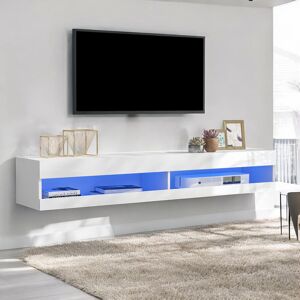 About this item: The TV stand is designed with glossy white panels to add a modern touch, and is equipped with ambient lighting with adjustable colour and brightness to create a warm and comfortable home environment. Featuring generous storage space and hidden storage cabinets for a neat, organised and personalised living room environment. It is made of high quality timber, which is finely sanded and painted to make the surface smoother and more delicate, and easy to clean and maintain. At the same time, the structure is stable and reliable, able to withstand large weight and long time use. Features: ⭐【 RGB Color Function 】 - 16 color LED Ambient lights & 4 dynamic modes system with remote ON/OFF and color control, create a wonderful atmosphere. ⭐【 Large Storage Space 】 - The TV cabinet has 1 large drawer and 2 glass shelves providing ample storage space for items such as TV boxes, DVD players, speakers, games consoles and more. ⭐【 High Quality Materials 】 - The Television stand is